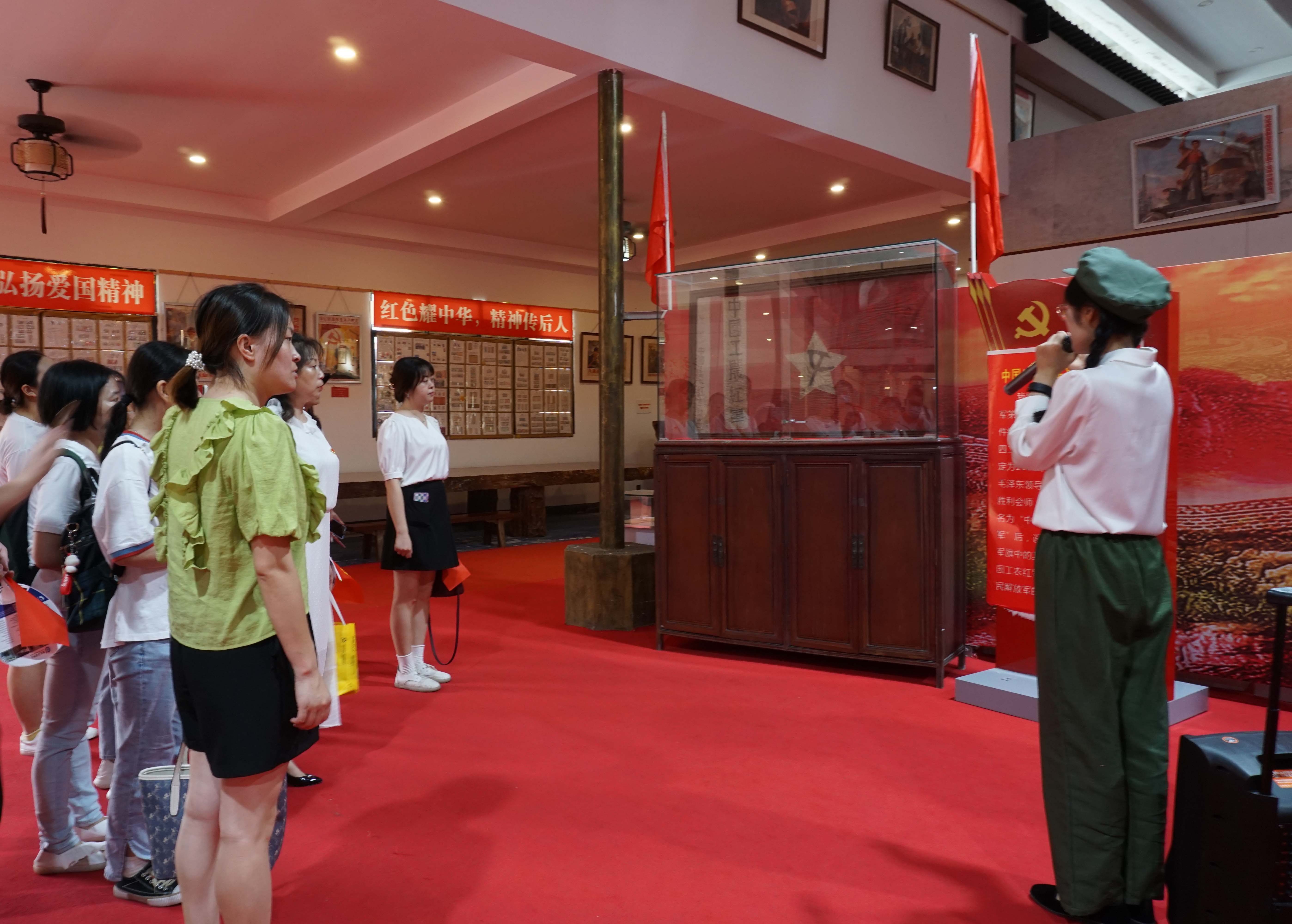 讲解员隆重介绍了镇馆之宝:“中国工农红军第四军军旗”